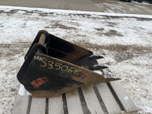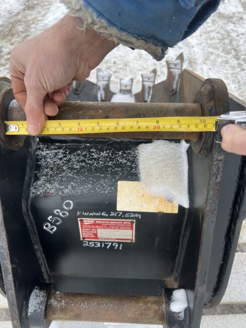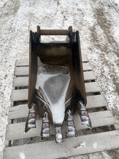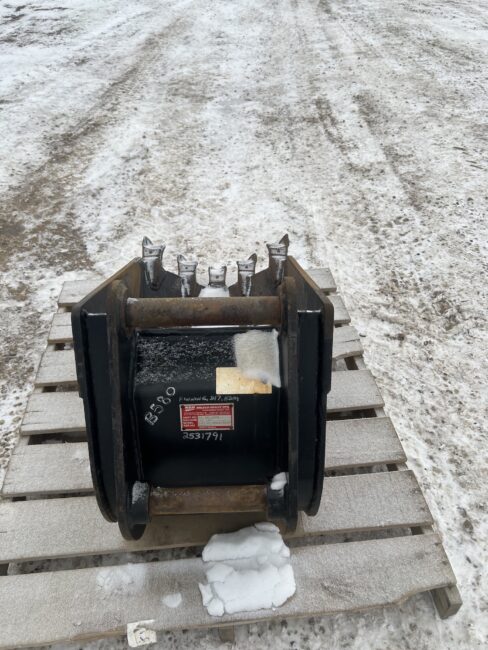 18″ WBM Backhoe Frost Bucket – Fits Caterpillar 430F Backhoe plus several others – 10″ top lugging, 8 ¼” bottom lugging, pin on – Stock #B580 $1250