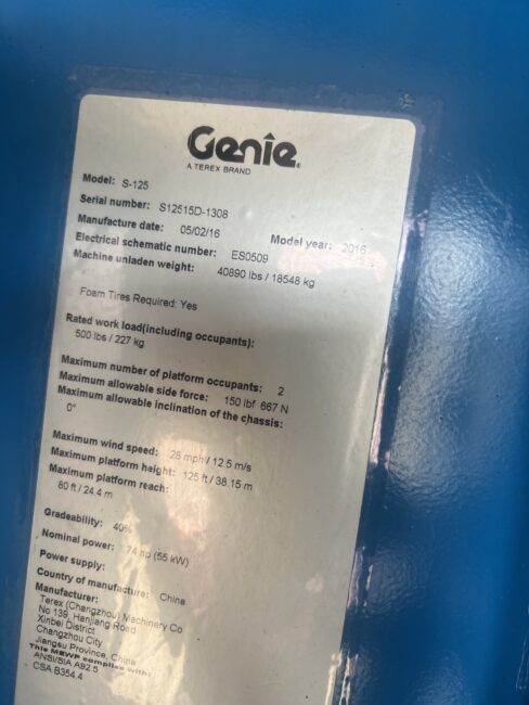 2016 Genie S125- Stock #3361