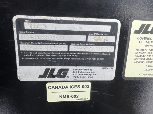 2017 JLG 1055 – Cummins Diesel, Block Heater, Heat/AC, Auxiliary Hydraulics, Manual Quick Connect, Counterweights, Boom Functions, 6’ Forks, 72” Tilt carriage, 10,000lb Lift Capacity, 55’ Reach, Foam Tires, 7012.0 Hours – Comes with current NDT Inspection – Stock #3234 $102,500
