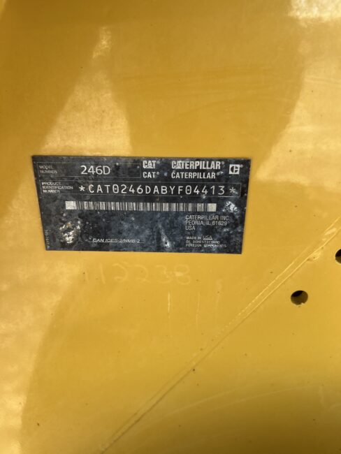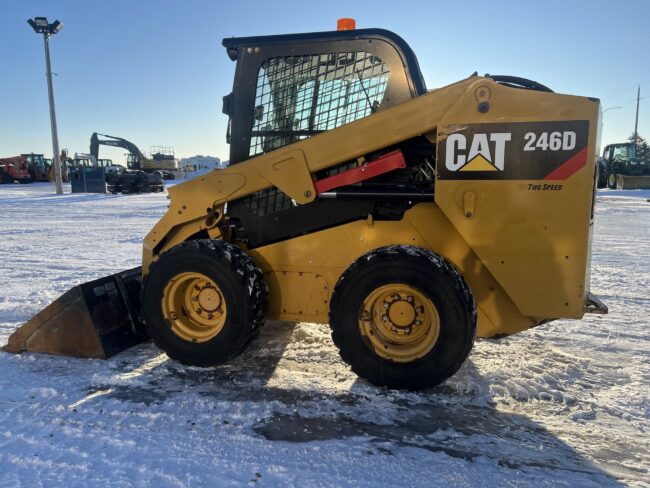 2018 Caterpillar 246D – Cat Diesel, Block Heater, 74HP, 2 Speed, Heat/AC, Auxiliary Hydraulics, Hydraulic Quick Connect, ISO Controls, 2200lb Lift Capacity, 74” Smooth Bucket, 1784.5 Hours – Stock #3347  $45,000