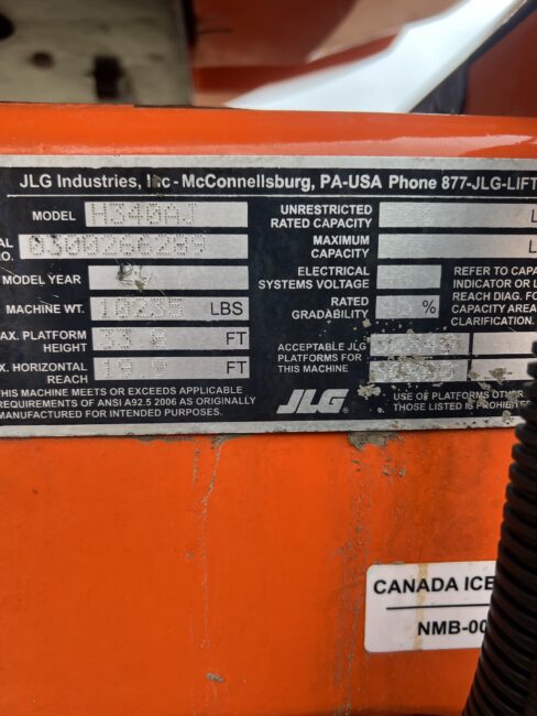 2019 JLG H340AJ- Hybrid (Electric & Diesel) Kubota Engine, 4X4, Foam Filled Tires, 5’ Basket, 19’ Platform Reach, 33’ Platform Height, 500lb Lift Capacity, Includes NDT Inspection, Stock #3373 $42,000
