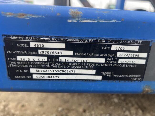 2009 JLG Triple L 4610 Drop Deck Trailer. 2 5/16 Ball, Single Axle 5900 lbs, Deck Is 6’ Wide And 9.5 ft Long. Great For Hauling Electric Scissor Lifts Or What Have You. Stock #3370 $9500